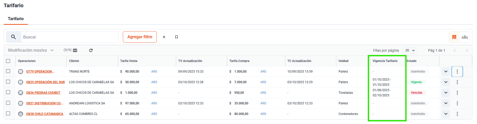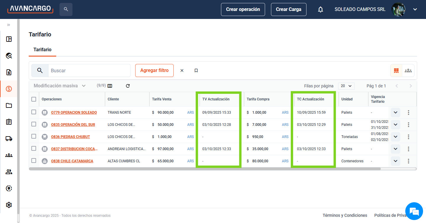 El Módulo Tarifario es la sección de la plataforma donde se centraliza toda la información de las tarifas asociadas a tus operaciones logísticas. Además de mostrar los datos cargados en cada operación, este módulo incorpora información complementaria ...
