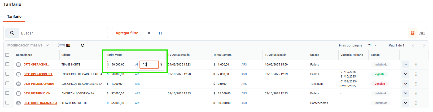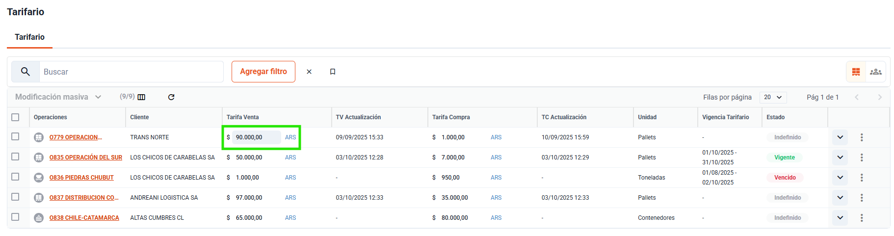 Gestión de vigencias Cada tarifa puede contar con una vigencia informativa (desde / hasta). Estas fechas sirven como referencia documental. Al llegar a la fecha de vencimiento no se produce ningún cambio automático en el sistema.